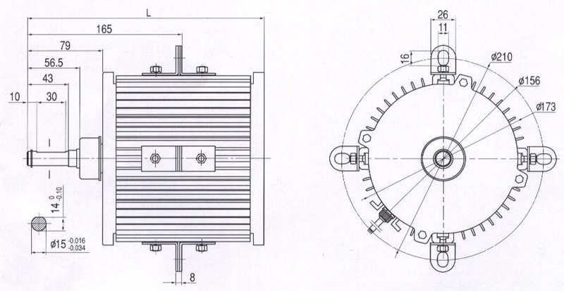 電機(jī)型號(hào) Model | 電壓(V) Voltage | 頻率(Hz) Frequency | 標(biāo)準(zhǔn)輸出功率(W) Nominal output power | 電流(A) Current | 參考工況轉(zhuǎn)速(rpm) Rated speed | L |